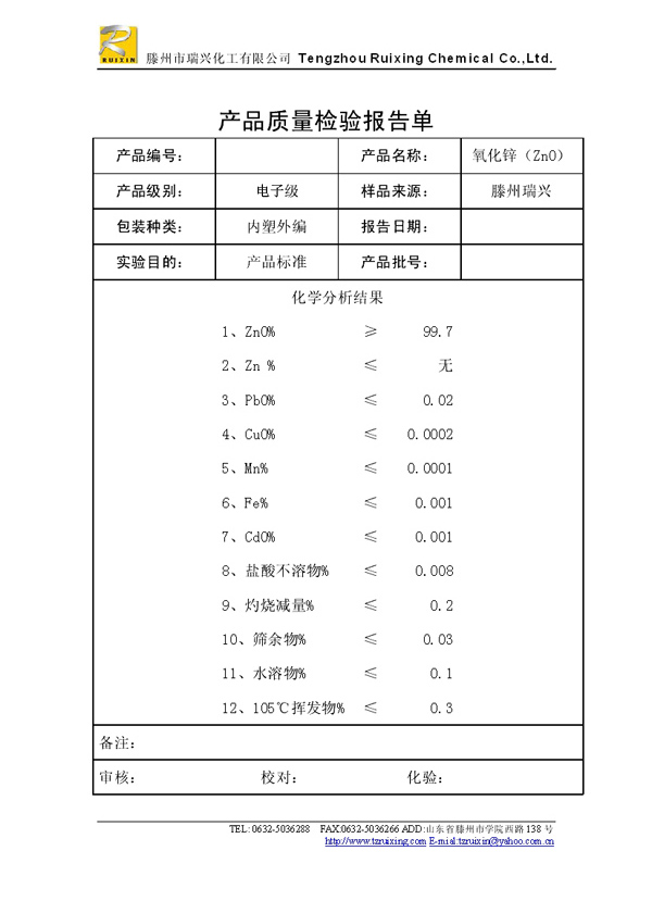 瑞興化工有限公司是生產氧化鋅的重點企業(yè),于2008年通過ISO9001:2008質量管理體系認證。“瑞興”牌氧化鋅在國內擁有較大穩(wěn)定的市場,并遠銷東南亞、中東、中南美等國家和地區(qū),在國內外享有較高聲譽。